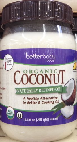 -. Feature : 2 - 15.5oz Jars of Naturally Refined ORGANIC COCONUT OIL by Betterbody / Our Organic Naturally Refined Coconut Oil is one of the healthiest oils in the world. Full of MCTs; aka good fats, coconut oil is an immediate source of energy. It is cholesterol-free, making it a perfect substitute for butter or margarine. Its neutral flavor and smell, and high smoke point of 425*F make it perfect for cooking and sautéing.