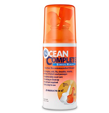Studio : Ocean Publisher : Ocean Binding : Health and Beauty Product Description Ocean sinus rinse provides complete daily nasal care with non-medicated relief for dry, irritated nasal passages due to allergies, cold, flu, sinusitis and rhinitis. Two convenient delivery options in one great product for sinus cleaning and nasal moisturizing. Contents are premixed and no neti pot is required. The preservative free salt blend formula is sterile and safe for frequent daily use. It helps to breathe easier. Doctor recommended brand. 0