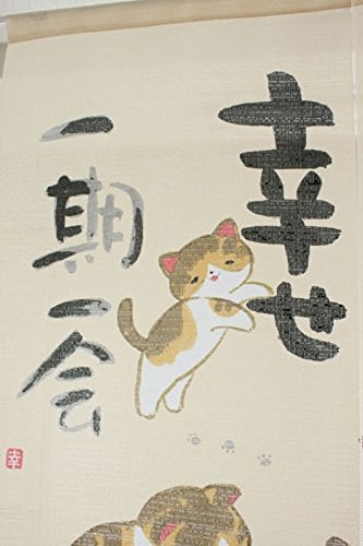 Made in Japan Noren Curtain Happy Cat Nyandaka Shiawase