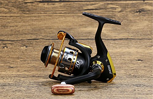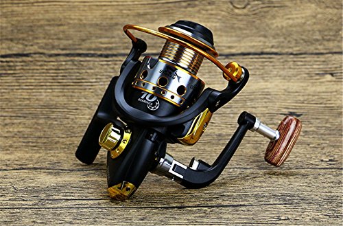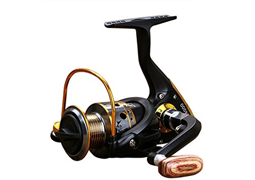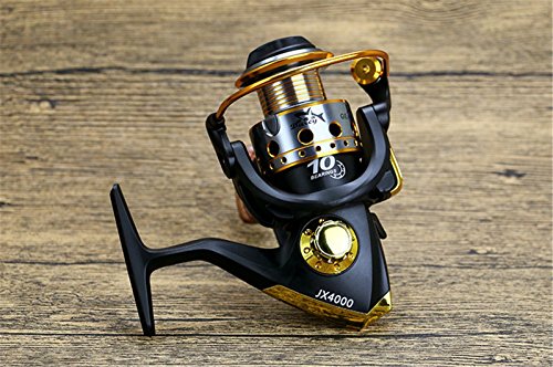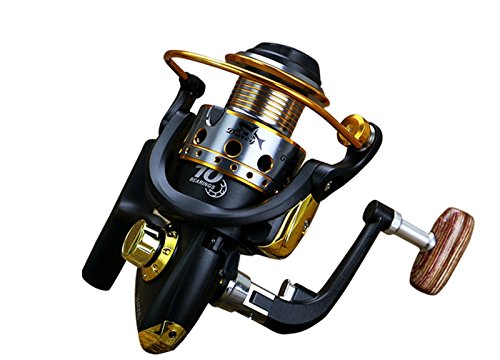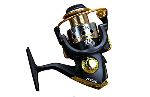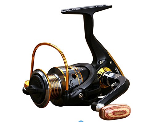 Studio : EEOZY Publisher : EEOZY Binding : Misc. Product Description If you are looking to catch small to medium sized fish, such as crappies, perch, trout, salmon, bluegills and walleyes, this is the perfect reel to use. Plusinno TM Fishing Reels Spinning Freshwater Saltwater with 5.5:1 Gear Ratio Metal Body Left/right Interchangeable Collapsible Handle Spinning Fishing Reel Interchangeable Collapsible Handle Reel 1.newest design fishing reel HA3000 2.aluminium spool with double color and one line holes 3.Instant anti-reverse 4.Power drive gear equipped for high strength 5.Thick coiled bail spring 6.S-curve oscillation system for very good line winding 7.Right/left inter-changeable handle 8.Computer balanced rotor 9.High tensile strength plastic body 10.Casts furthest amoung reel types; Longer life of reel; Cast light weight lures and baits better 11. Additional uses include: Pier fishing; Offshore fishing; Shore fishing; Boat-mounting Model bearing weight gear speed ratio 1000 10 shaft 200 g 5.5.1 2000 10 axis 210g 5.5.1/ 3000 10 Axis 250g 5.5.1/ 4000 10 axis 260g 5.5.1/ 5000 10 axis 275g 5.5.1/ 6000 10 shafts 360g 5.5.1/ 7000 10 Axis 375g 5.5.1/ Long * / wide * / high * 1000 / 12.5CM / 7.5CM/10CM/ 2000 / 12.5CM / 8CM / 10CM/ 3000 / 14CM / 8.3CM / 11CM / 4000 / 14CM / 8.5CM / 11CM / 5000 / 16CM / 9CM / 12CM / 6000 / 16CM / 9.5CM / 12CM / 7000 / 16CM / 10CM / 12CM /