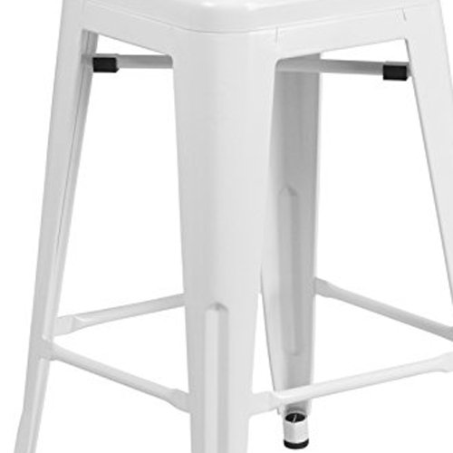 -. Title : 24'' High Backless Black Metal Indoor-Outdoor Counter Height Stool with Square Seat