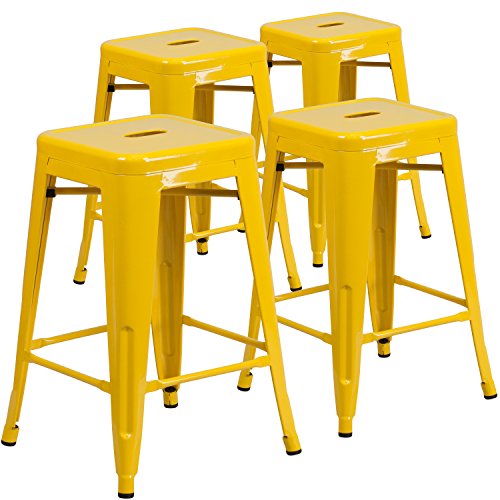 -. Feature : Dimensions: 16W x 16D x 24H in.; Seat height: 24 in. / Commercial-grade metal construction / Variety of finishes available / Convenient stackable design / Suitable for indoor or outdoor use
