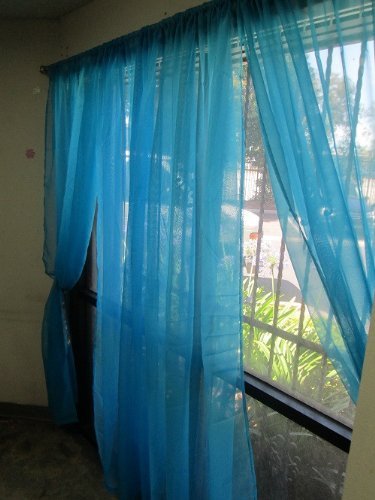 ELEGANCE LINEN 2 PIECE SOLID SHEER WINDOW CURTAINS ROD PANELS TREATMENT 40"W X 84"L TURQOUOISE