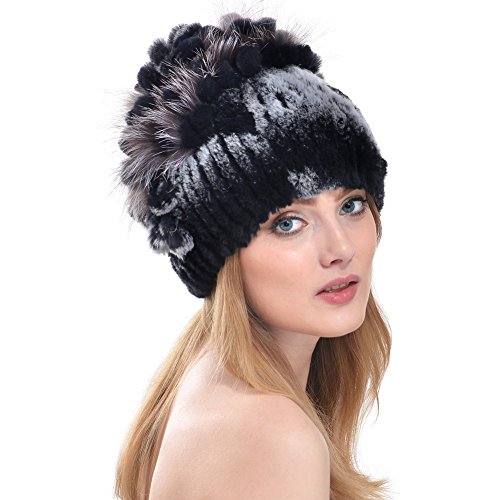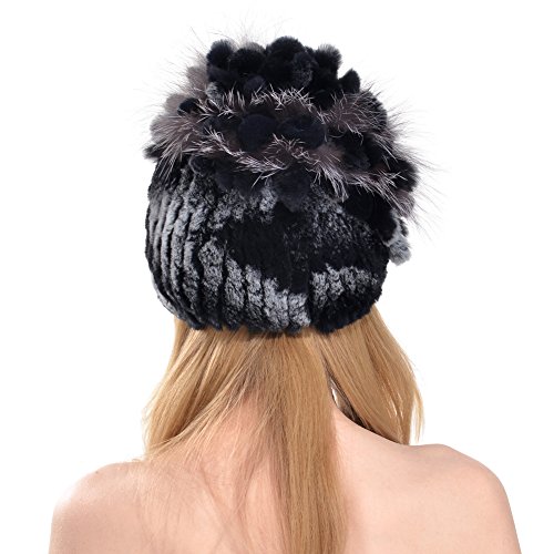 Title : Queenfur Real Knitted Rex Rabbit Fur Hat Women Rex Rabbit Fur Flower Top Cap (Color 1)