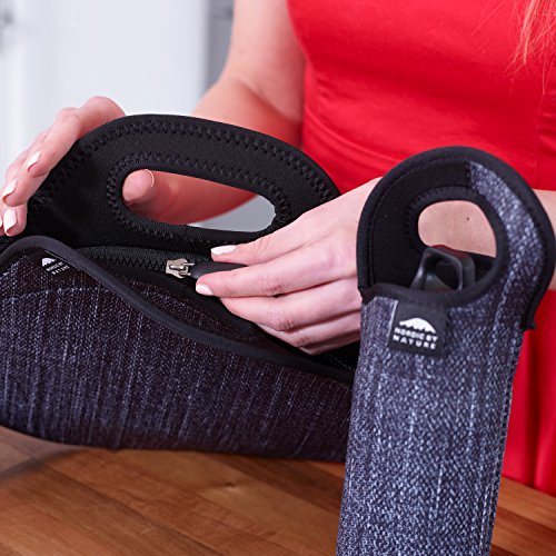 -. Feature : Better Insulation: Made with thicker 4mm neoprene, your Nordic by Nature lunch bag keeps your food nicely chilled for up to 4-6 hours. Also keeps hot stuff hot... and everything fresh & delicious / Room for Larger Lunches: At 12" x 12", this stretchy tote fits even your bulkier containers. Wider bottom keeps bag uP.R.Ight; heavy-duty zipper keeps it secure; colorful interior keeps it stylish! / No More Soggy Food: Why pack your water bottle in with your lunch, where it can "sweat" & soak your sandwich? Instead, stash it in our separate neoprene sleeve, where it'll stay cold & convenient. / Non-Toxic & PVC-Free: Relax! Your lunch bag & bottle sleeve are 100% safe, for you and for the environment. Plus, both are washable, reusable & foldable for easy storage. / 60-Day Guarantee: We're sure you'll love your Nordic by Nature Set: lunch bag & bottle sleeve (included). But, if you don't, just return it within 60 days of delivery for a full money-back refund.