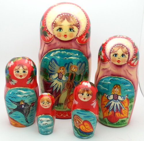 -. Title : Thumbelina fairy tale Russian Hand Carved Hand Painted Nesting 5 piece DOLL Set / 7"