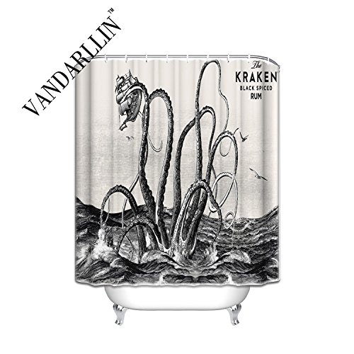 Kraken Attack Polyester Fabric Bathroom Shower Curtain, 72 x72 Inches Long,, Black And White