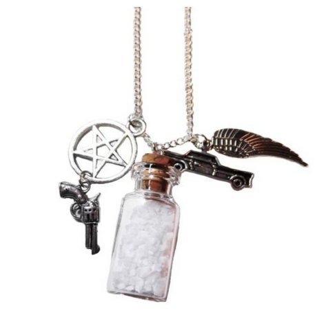 Supernatural TV Series Salt Bottle Protection CHARMS NECKLACE on 24 Inch Chain
