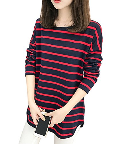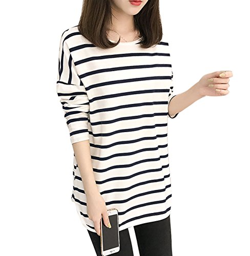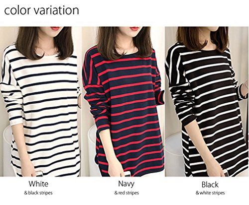 -. Title : Be・Be・Lu CLOSET(ベベルクローゼット) ボーダー Tシャツ 長袖 レディース 丸首 ゆったり 丈 長め 綿 きれいめ カジュアル