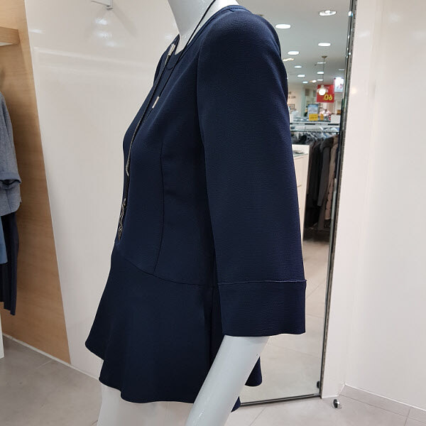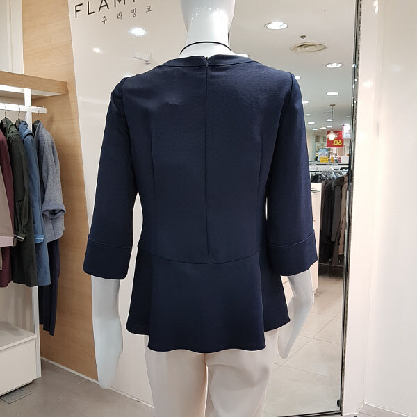 폴리소재로 가볍고 부드러우며 슬림한 핏감으로 여성스러운 분위기를 연출하는디자인 입니다.스커트 , 바지등 다양하게 연출되며 무난하게 코디 하기 좋습니다.