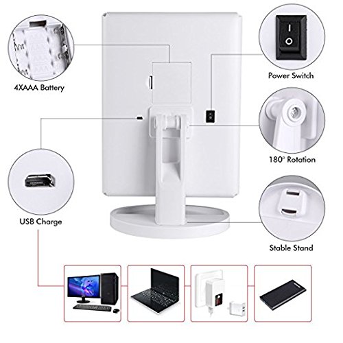 GREAT LIGHTING: This makeup mirror with lights has 22 LED's to give plenty of soft natural light.