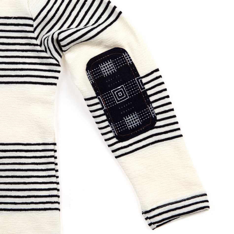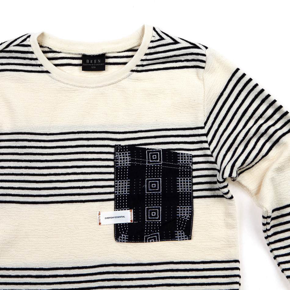 | 니트조직같은 스트라이프과 함께 크레프트한 원단의 포켓 패치와 팔꿈치 패치 믹스가 유니크한 티셔츠입니다. 스판기 있는 원단과 소프트한 터치감으로 착용감이 좋습니다. ![]() ![]() ![]() ![]() | ||||||||