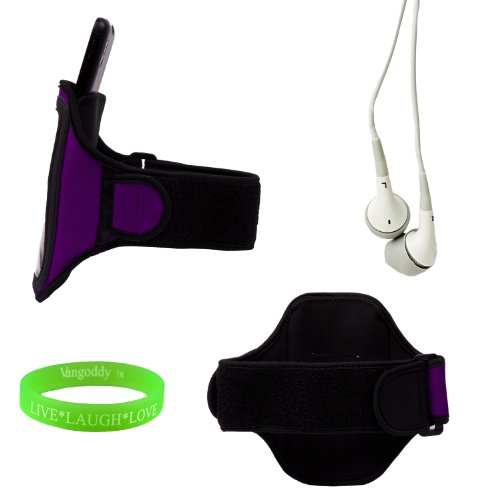 -. Title : Elegant OEM VG Brand Purple Armband with Sweat Resistant Lining and Unique Key Pocket for Samsung Ativs Smart Phone + Compatible Black 3.5mm Jack Earbud Earphones + VanGoddy Wrist Band