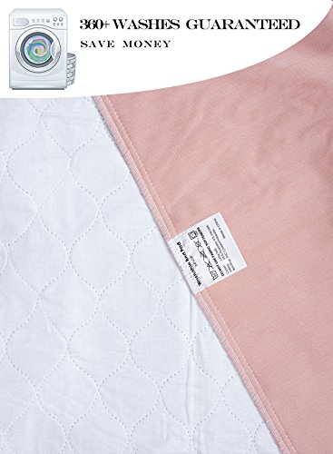 Bearals Absorbency Reusable Bed Pads, Washable & Waterproof Bed Sheet Underpad with Tuck-in-Flags (36” X 36” Inch), 360+ Washing Bed Mattress Pad Protector for Incontinence (Pink)