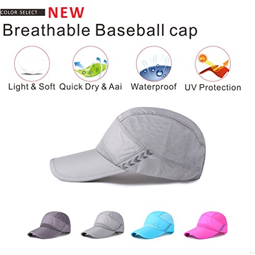 -. Feature : - Quick Dry, Waterproof, Super Breathable: This baseball cap is made of high quality technical fabric, Light, soft and comfortable, also can prevent the light rain or light splash. Lotus effect will make the water drop slip naturally without the occurrence of leakage phenomenon in a short period of time. / - Lightweight & Super Thin: This lightweight performance sports cap weighs only 2 ounces(about 57g). It is suitable for regular daily use and outdoor activities especially like running, walking, fishing, running, hitch-hike travel, outdoor research, baseball, cycling. / - Moisture Wicking Performance: Quick drying polyester mesh fabric works to keep you dry and comfortable during every workout. The light polyester mesh construction means air flows freely and allows your skin to breathe. / - Size Adjustable: One size fits the most, the back buckle is more durable than General closure, It's resilient, better to stick your head. Head circumference: 21.6-24.4inches (55-62cm), Cap depth: 4.3 inches(11cm), Bill length: 3.5 inches(9cm) / - TRAIL TESTED GUARANTEE - your complete satisfaction is our goal. If you're not happy with your purchase, let us know and we'll provide a replacement or refund - no fine P.R.Int, no strings, no time limits, no shipping charges. Nothing but our commitment to do what it takes to satisfy our customers.