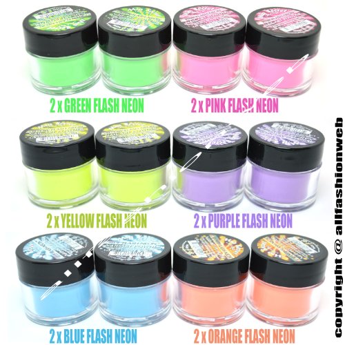 - Title : FULL 12 MIA SECRET NAIL ART ACRYLIC POWDER FLASH NEON GLOW IN DARK + FREE EARRING