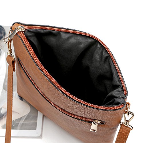 Product Description Medium Crossbody Purse for Women, Triple Zipper Crossover Shoulder Bag A medium crossbody purse, lightweight and not bulky, but roomy enough for your basic stuffs like cell phone, wallet, keys, glasses, power bank and some cosmetics. Note: The crossbody strap drop is about 27 inches maximum, it is longer than average, if you are a tall woman or need long strap, this will be a good choice. Features: Structures: 1 main compartment, 1 front zip pocket, 1 back zip pocket Adjustable Crossbody Strap Maximum Strap Drop: 27 inches High Quality Faux Leather Heavy Duty Metal Zippers Zipper Closure Size: 9.0" (W) x 10.0" (H) x 0.8" (D) Lightweight: About 0.65 lb DukeTea devote to provide special design personal items, especially in leather product like wallets, card cases, belts, and various bags. All DukeTea products have at least 3 months guarantee, some are longer. Thank you for choosing DukeTea.