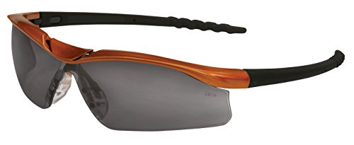-. Feature : Dallas safety glasses eyewear features a lightweight frame with flexible bayonet temples / Made of full length non-slip, polycarbonate, soft temple material / Close orbital seal, stylish wraparound lens design for side impact protection that comfortably fits a wide variety of users / Soft, secure TPR nose pad and exclusive Duramass scratch resistant coating; meets or exceeds ANSI Z87+ configuration / Available in nuclear orange frame and gray anti-fog lens