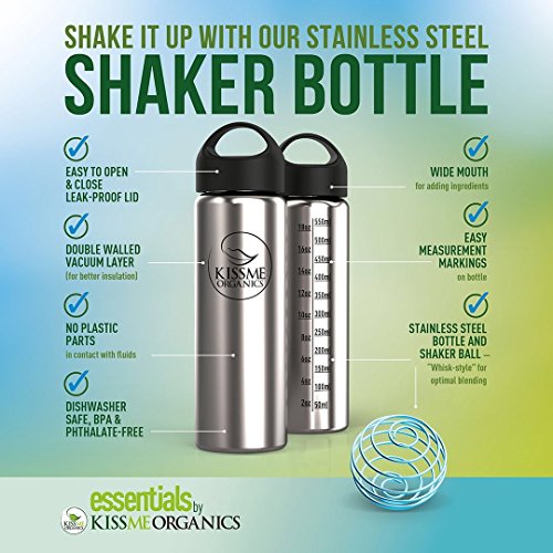 -. Binding : Misc. -. Brand : Kiss Me Organics -. Color : Design 2 -. EAN : 0647409740726 -. Feature : Vacuum Insulated - Our Stainless Steel Water Bottle is double walled with a vacuum layer for better insulation to keep your cold drinks cold and your hot drinks hot. / Provides Completely Clean Beverages - No plastic parts come in contact with the liquids held inside the stainless steel bottle. / Wide Mouth Bottle - Convenient design allows you to easily add mixers such as protein powders, etc to your shaker bottle. / Stainless Steel Shaker Ball Included - Comes with a stainless steel shaker ball for keeping your smoothie mixed or shaking up your protein drinks. / Measurement Markings On The Side Of The Shaker Bottle - Comes with ounce / ml markings P.R.Inted on the side for convenient measuring. -. IsAdultProduct : 0 -. IsAutographed : 0 -. IsMemorabilia : 0 -. Label : Kiss Me Organics -. Manufacturer : Kiss Me Organics -. MPN : 14179214 -. PackageQuantity : 1 -. PartNumber : 14179214 -. ProductGroup : Sports -. ProductTypeName : SPORTING_GOODS -. Publisher : Kiss Me Organics -. Studio : Kiss Me Organics -. Title : Stainless Steel Water Bottle - Vacuum Insulated Flask with Stainless Steel Shaker Ball - 20-Ounce Shaker Bottle And 1 Shaker Ball - From Kiss Me Organics Essentials -. UPC : 647409740726