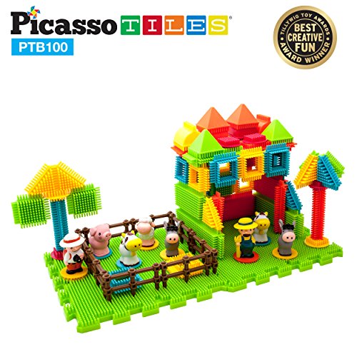 -. Title : PicassoTiles PTB100 100pcs Bristle Shape 3D STEM Building Blocks Tiles Farm Theme Set Construction Learning Toy Stacking Educational Block, Creativity beyond Imagination, Recreational, Educational