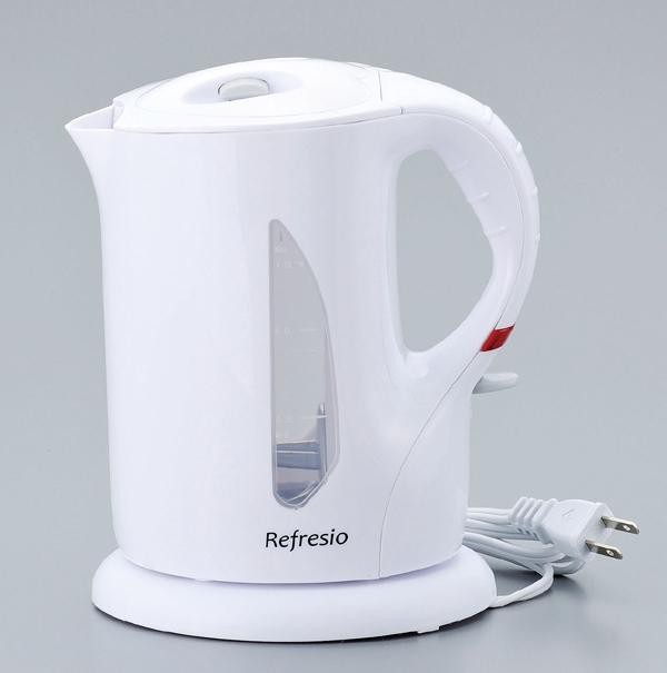 コードレスだから、コードが絡まないので楽にお湯が注げます。 製造国:中国 素材・材質:本体:ポリプロピレン 商品サイズ:約18.5×13.5×21.5cm 重量:約590g 仕様:100V-550Wコード長さ:約1.1m容量:約1.0リットル 付属品:取扱説明書、保証書(1年) ※サプライヤー直送品 ご注文後7~8営業日後の出荷となります【商品名】リフレシオ 電気ケトル1.0L MRM-9311