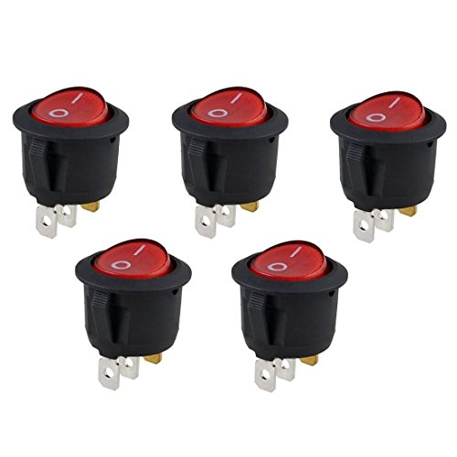 Flyshop AC 110V Red Light SPST 3-Pin ON/OFF Round Boat Rocker Switch 5 Pcs