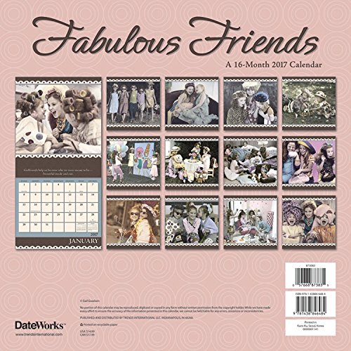 -. Binding : Office Product -. Brand : Trends International -. EAN : 0709257563671 -. Feature : 2017 Calendar featuring beautiful images for every month of the year. / Includes Holidays and Observances. / Keep your appointments and Birthdays organized in one place! / Perfect for office spaces, bedrooms, classrooms and more! / Makes a great gift for friends and family! -. Label : Trends International -. Manufacturer : Trends International -. MPN : 873083 -. NumberOfItems : 1 -. PackageQuantity : 1 -. PartNumber : 873083 -. ProductGroup : Office Product -. ProductTypeName : OFFICE_PRODUCTS -. Publisher : Trends International -. Studio : Trends International -. Title : 2017 FABULOUS FRIENDS Calendar - 12 X 12 Wall Calendar -. UPC : 606345311636