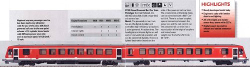 -. Binding : Toy -. Brand : Marklin -. EAN : 4001883377636 -. Feature : Digital / Built-in interior lighting / Triple headlights and two red marker lights that change over with the direction of travel / Built-in interior details / Metal locomotive frame -. Label : Walthers - Life Like -. Manufacturer : Walthers - Life Like -. Model : 441-37763 -. MPN : 37763 -. PackageQuantity : 1 -. PartNumber : 37763 -. ProductGroup : Hobby -. ProductTypeName : HOBBIES -. Publisher : Walthers - Life Like -. Studio : Walthers - Life Like -. Title : Marklin Germain Railroad HO scale Diesel Powered Rail Car Train -. Warranty : Manufacturer's Warranty is two years from the date of purchase when purchased from an Authorized USA Dealer such as us.