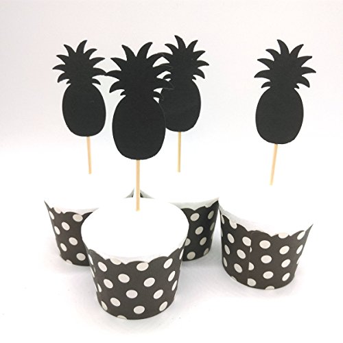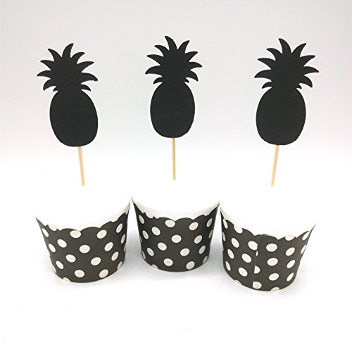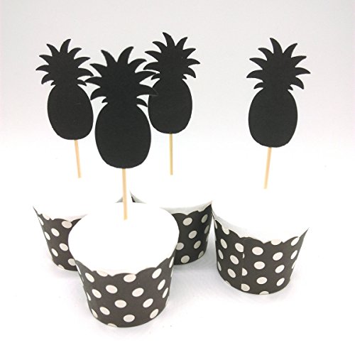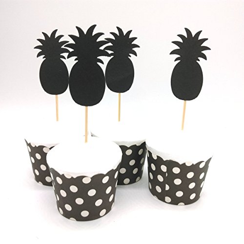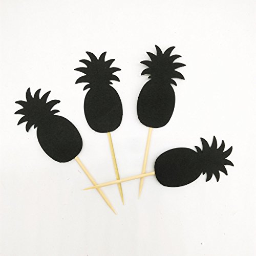 Hemarty Black Glitter Pineapple Cupcake Topper Cake Picks for Wedding Birthday Luau Beach Party Baby Shower Supplier Foods Decoration 12pc ?-