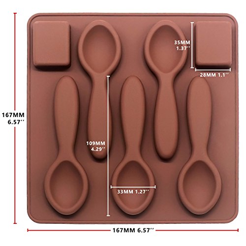 - PACKAGE: Food Grade SILICONE MOULD X1 , FUNSHOWCASE brief TUTORIALs X1 , COLOUR IS SENT RANDONLY., Demension approximate.7x7cm,spoon demension approx. ( longest side ) 11x3.3cm, Cube Sugar 3.3x2.7cm