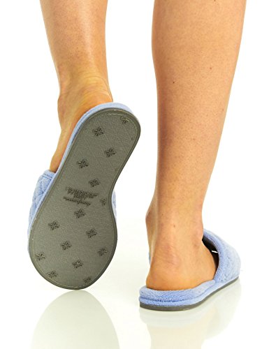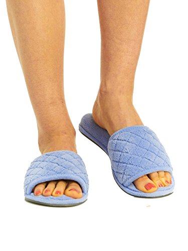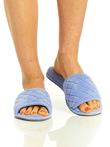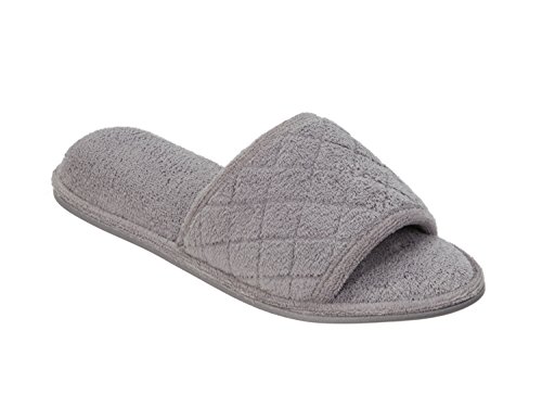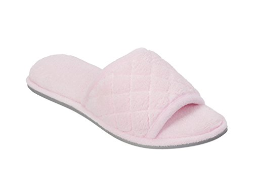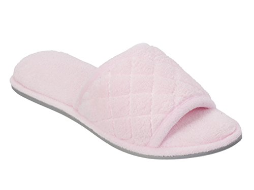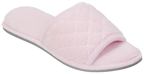 Binding : Apparel Product Description Absorbent terrycloth makes these Dearfoams Women's Micro Terry Slides ideal after you shower, or packing in your gym bag. Slippers, Microfiber terry upper and lining with trellis stitching on the toe, Multi-density Cushioning: Superior support with an extra wedge cushion at the heel, Skid-resistant rubber outsole, Machine wash. 0