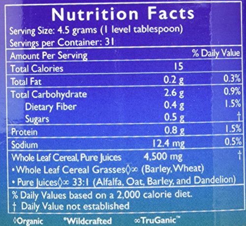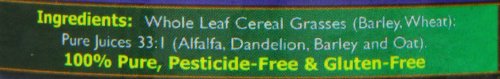 -. Feature : It provides healthy alkaline elements. / It contains 5 different forms of 100% pesticide free grown grasses. / Excellent Source of fiber and nutrients to support a healthy bowel.