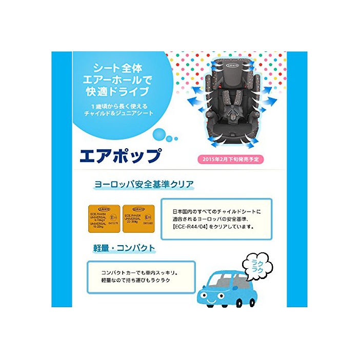 원본상품명: GRACO (グレコ) ジュニアシ?ト(チャイルド&ジュニア) エアポップ カラフルドットBK 【?量コンパクトボディ + 3Dサポ?トクッション構造 + 5段階高さ調節ヘッドサポ?ト】 (1?頃~1