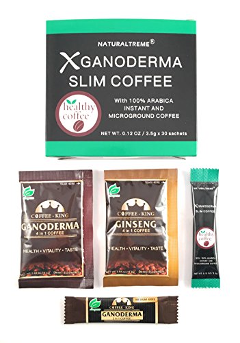 -. Feature : GET RID OF THOSE EXTRA POUNDS AND IMPRESS WITH THE NEW YOU: If you have been looking for a way to shape your body and stand out with your slim, fit figure, you have come to the right place! This top notch ganoderma weight loss coffee is the perfect choice for you! Drinking it while following a healthy diet, combined with regular physical activity and exercising, this slimming coffee is bound to work wonders for your body. Are you ready to make some heads turn? / NOTHING LESS THAN THE BEST: This ganoderma slimming coffee is free of additives, coloring, dyes and artificial ingredients! Featuring a natural formula that is enriched with ganoderma mushroom, l-carnitine and extracts of green tea, garcinia cambogia, ginseng, cactus plant, lotus leaf and guarana, this instant black coffee will suppress your appetite, boost your metabolism, energy levels and focus. Moreover, it will help you burn fat and promote an overall good health condition. / INCOMPARABLY EASY TO PREPARE: Whether you are relaxing at home, or you are on the go, this weight loss coffee is all you need! Just tear the sachet, pour it into a mug, fill it with hot water, stir and enjoy! As simple as that! In case you do not like black coffee, feel free to add soy milk, coconut milk, stevia or a healthy coffee creamer! Have a cup about 20 minutes before breakfast and a second one before lunch if you like! Losing weight has never been easier before! / ENJOY A TRIP TO THE TASTE OF LAND: This must have slimming coffee pack includes 30 sachets of slimming coffee and 4 additional, bonus, different varieties, giving you the chance to try all of them and get carried away by the rich, delicious flavors! Taste the Naturaltreme XGanoderma slim coffee, the Coffee King Black Ganoderma Coffee, the Coffee King Ganoderma Latte and the Coffee King American Ginseng Latte and pick the one you like best! We bet you will find it hard to choose among them! / 100% RISK FREE PURCHASE: Keeping you happy and providing you with the friendliest customer service is our number one goal. This is why we always stand 100% behind our products, offering you a 30 day no questions asked money back guarantee in case this weight loss coffee does not live up to your expectations.