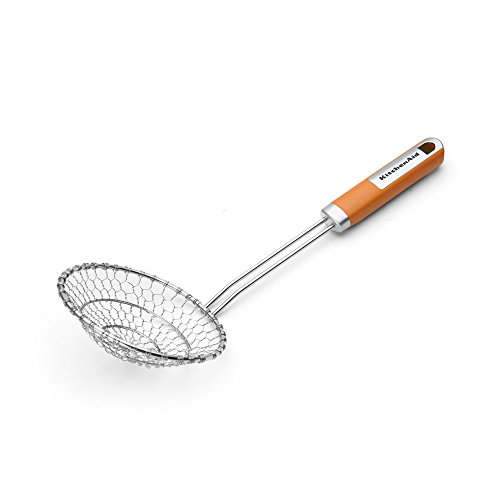 -. Feature : The stainless steel, wire mesh basket is attached to a long handle, and is perfect for lifting out food from hot oil, water or broth, you'll never have to worry about burning your fingers again. / Asian strainer measures 14 inches long, 1.5 inches deep, 5 inches wide.