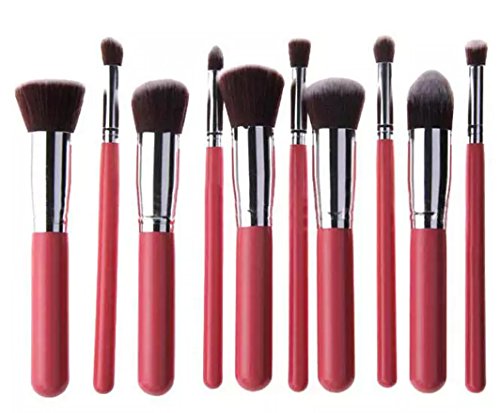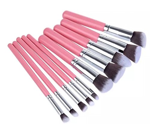 KiraShan - New Kabuki Makeup Brush Set 10pcs - Premium Synthetic Brushes for Cosmetic Foundation Blush Blending Face Powder (Pink, Silver)