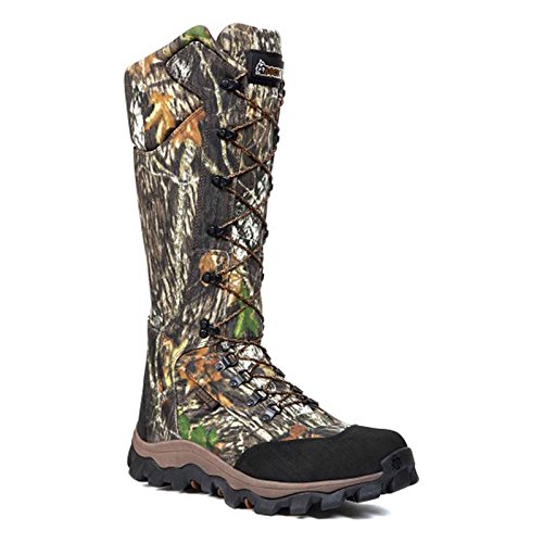 Studio : Rocky Publisher : Rocky Binding : Apparel Product Description You will be glad to know that Rocky has a comfortable, snake proof boot, which is going to keep your feet safe and dry. You should have this pair of 7379 Men's Rocky Lynx Waterproof Snake Boots on your feet. The upper is made with 16" of genuine Cordura?≪ fabric that is covered in a MOBU (Mossy Oak Break-Up?≪) camo print. This nylon fabric is rugged enough to be able to withstand tough conditions but it's also lightweight. On both the toe and heel, this Rocky Lynx boot offers abrasion protection. The rubber Lynx outsole is great for all-terrain. You will not have to struggle to be able to move quickly in these boots.16" Genuine Cordura?≪ fabric that is covered in a Mossy Oak Break-Up?≪ Camo Print Side Zip For Easy On-Off Thick and Comfortable EVA Midsole Terra Suspension PU Cushion Footbed Guaranteed Rocky Waterproof Construction Aggressive All-Terrain Lynx Outsole High Abrasion Toe and Heel 7379 Men's Rocky Lynx Waterproof Snake Boots - Camo 0