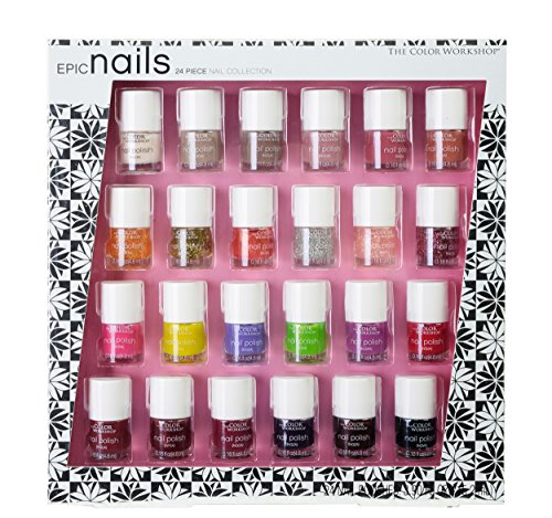 -. Binding : Health and Beauty -. Brand : The Color Workshop -. EAN : 0019333770221 -. Feature : 24 Piece nail polish collection / Includes shades of classic, nudes, sparkly and fun and edgy tones. / Epic Nails is the ultimate collection of nail polishes. -. Label : Markwins International Corporation (Beauty) -. Manufacturer : Markwins International Corporation (Beauty) -. Model : 7702200 -. MPN : 7702200 -. NumberOfItems : 1 -. PackageQuantity : 1 -. PartNumber : 7702200 -. ProductGroup : Beauty -. ProductTypeName : BEAUTY -. Publisher : Markwins International Corporation (Beauty) -. ReleaseDate : 2017-09-12 -. Studio : Markwins International Corporation (Beauty) -. Title : The Color Workshop Epic Nail Collection, 24 Count -. UPC : 019333770221