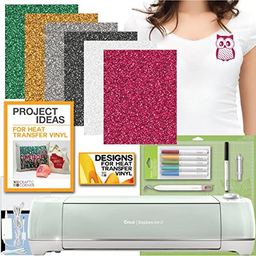 Cricut Explore Air 2 Machine Bundle - Glitter Heat Transfer, Tools, Pens & Designs