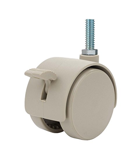 Twin Wheel Caster Solutions TWHN-50N-M23-TN-B 2" Diameter Nylon Wheel Hooded Brake Caster, 8 mm x 25 mm Threaded Stem, 110 lb Capacity Range