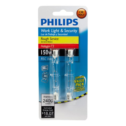Philips 416875 Work and Security 150-Watt T3 RSC, Double Ended Base Light Bulb, 2-Pack