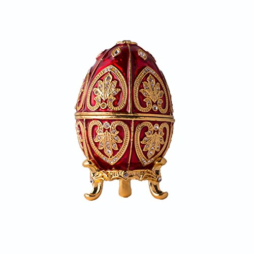Fine Pewter Boxes Jeweled Egg Jewelry Holder Organizer Trinket Boxes Hinged (Red and Gold)