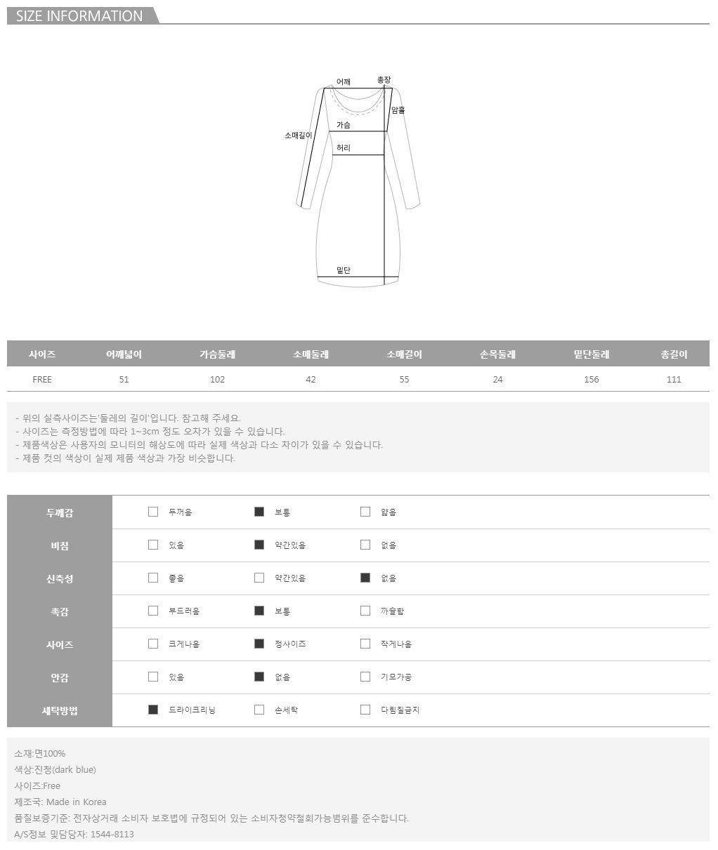 컬러는 진청 1color로 구성되어 있으며,