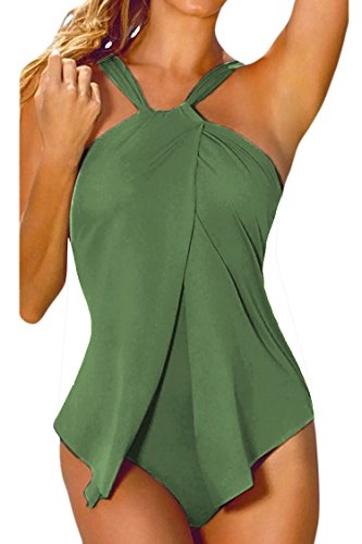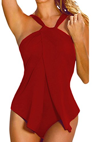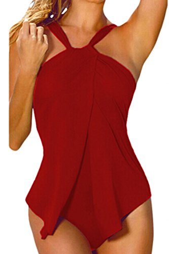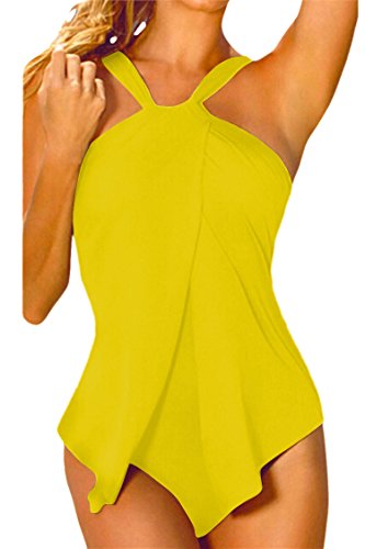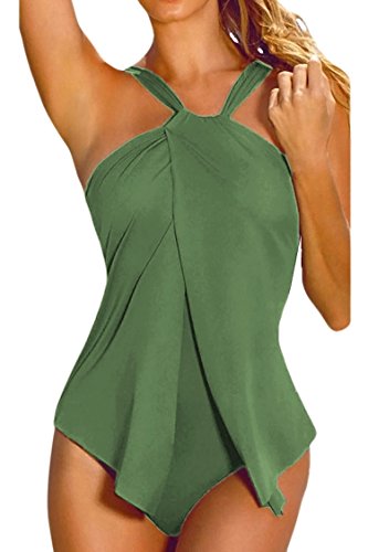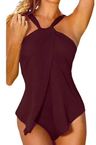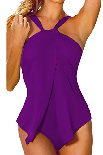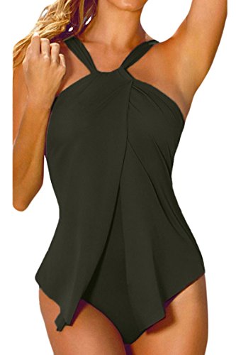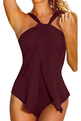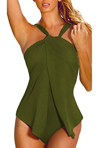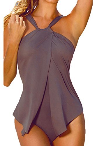 | Sovoyant Women's Halter Neck Wrap Split Front One Piece Swimsuit Monokini |