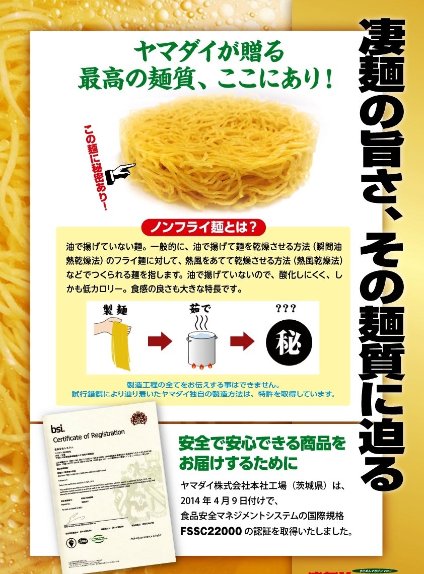 ● Great noodle Yokohama Tonkotsu / Nonfly noodles of our proprietary recipe (cutting edge 16 corner, noodle thickness 1.43 mm) was used.