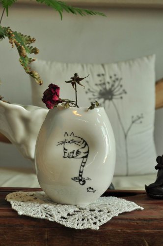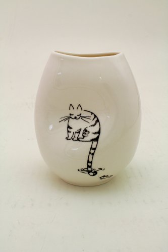 Top Collection Porcelain Vase - Cat Fishing Artwork, 5 Inches High