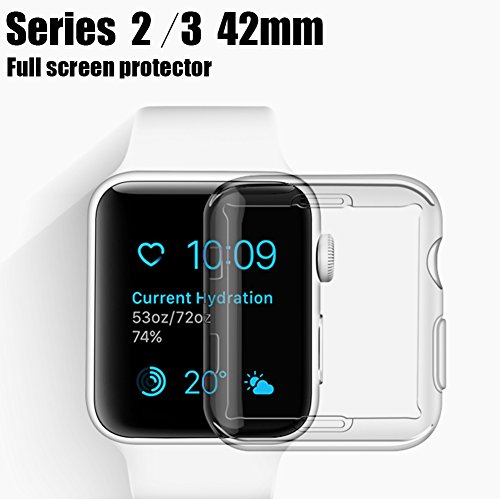 -. Feature : SEMI PROTECTION:Covers all corners and Prevents your watch from dust, fingerP.R.Ints, scratches. / NATURAL VIEWING:99% high transparency without touch sensibility problems. / EASY INSTALLASION:Sturdy and flexible premium TPU material for easy installation. Feels soft. / Ultra Thin and Exact Fit---Exclusive design for Apple Watch 42mm Series 2& Series 3,case fits perfectly around the watch without adding any extra bulk. / Kindly Remind---You can carry this protector at gym or sports activities, it will not cause the moisture (from perspiration) to be trapped between this product and the watch screen. If you still have any questions, feel free to contact us