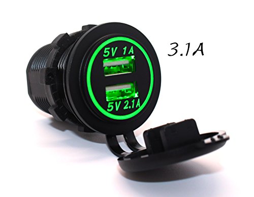 -. Feature : Package Included:1 x Blue LED Dual USB Car Charger Adapter, 2 x Insulated Terminals / Water proof,High quality socket with USB duel accessory charger and sealing cap. / Charges for iPhones,mobile phone,iPads,vehicle,camera,mp3,GPS. phone, camera, mp3 / Has two ports one charging at 2.1 amp and one charging at 1 amp. A tight fitting cap protects the USB ports when not in use. All nylon construction and UV resistant. / Input : 12V,Output : 5V-3.1A