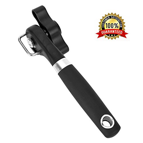 Docik Stainless Steel Manual Can Opener with Soft Grips Handle, Ergonomic Smooth Edge, Side Cutting Can Opener That Won't Touch Food, Black
