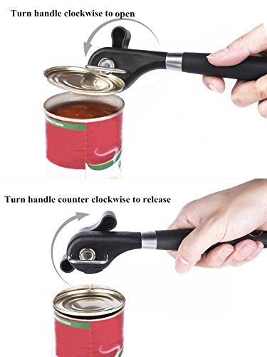EASY TO USE AND STORE: This tin opener has a comfortable and soft turning knob for easy operation. The ergonomic anti-slip handle offers a comfortable grip for your safety and sharp cutting wheel make opening cans nearly effortless. It has an extra big hole at the end so you can easily hang it up to save space. And the compact and smart design makes it a perfect fit for your kitchen drawers and cabinet. It's really convenient to store it.